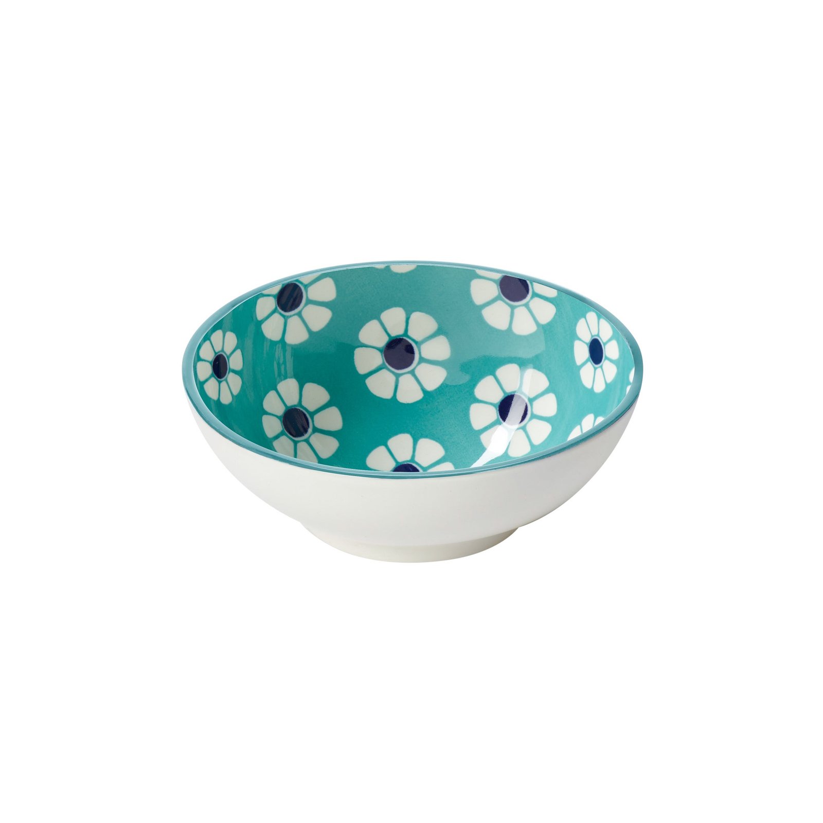 Kiri Porcelain 8 oz 4.5 Inch Diameter Bowl – Teal & Blue Daisy
