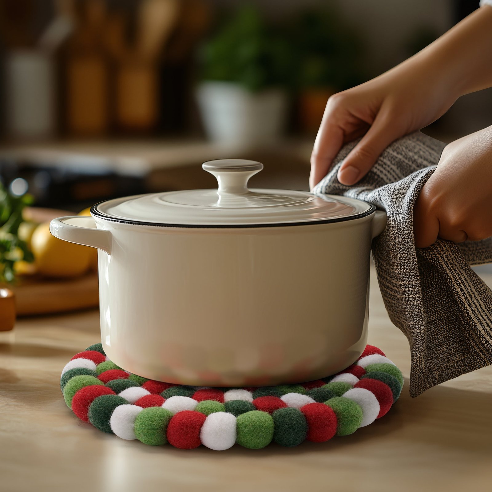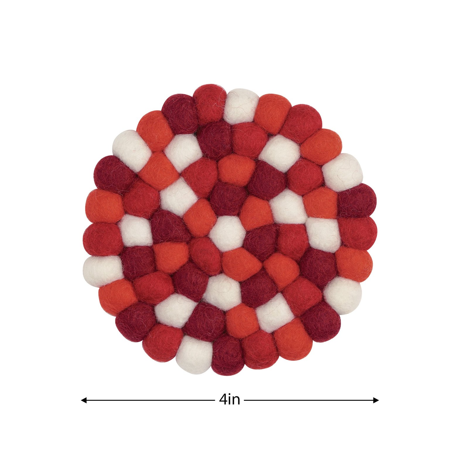 MODWOOL Felt Ball Round 8 In Diameter Trivet – Red/White/Green