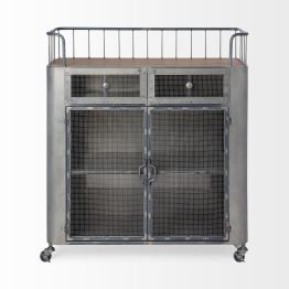 Udo Metal Frame Two Door Cabinet w/Two Drawers & Wood Top Bar Cart