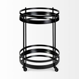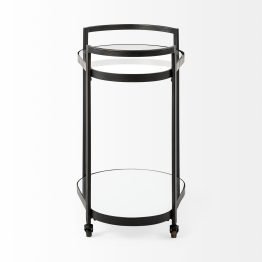 Ada Round Shape Black Metal Frame Two-Tier w/Glass Shelf Bar Cart