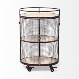 Saluti II Black Metal Frame cage w/three wood shelves oval Bar Cart