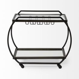 Eleonore Black Metal Frame Two-Tier w/Glass Shelves Bar Cart