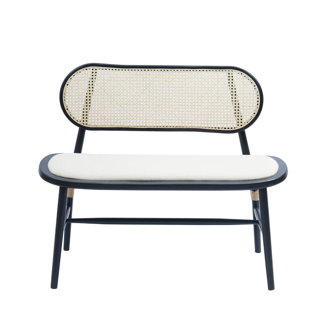 Denison 55L x 14.5W Black Beige Woven Cushion Top W Black Wood Base Accent Bench