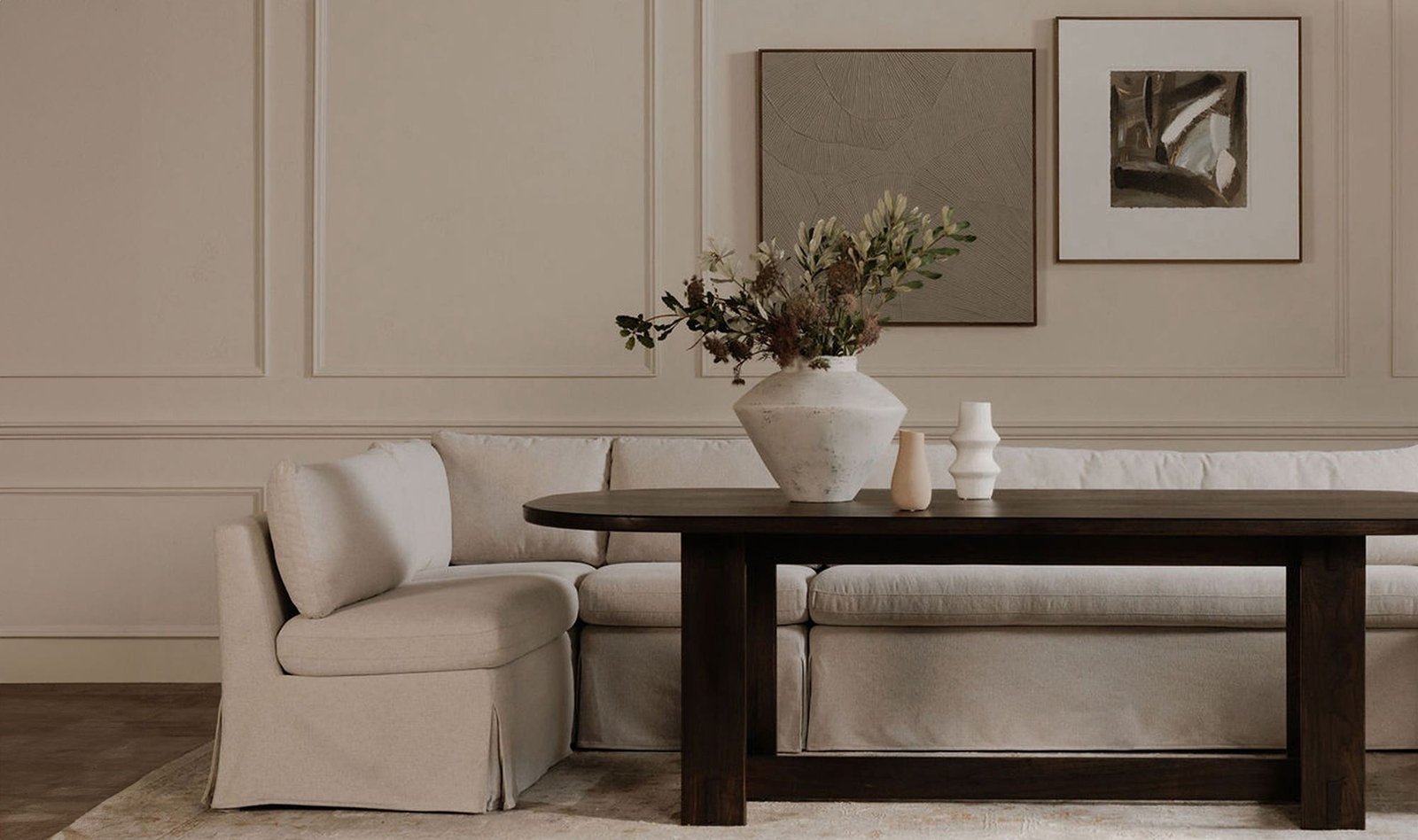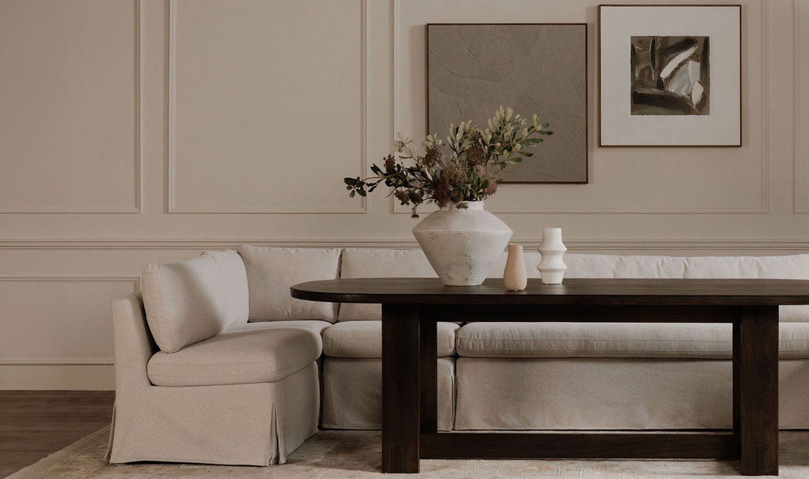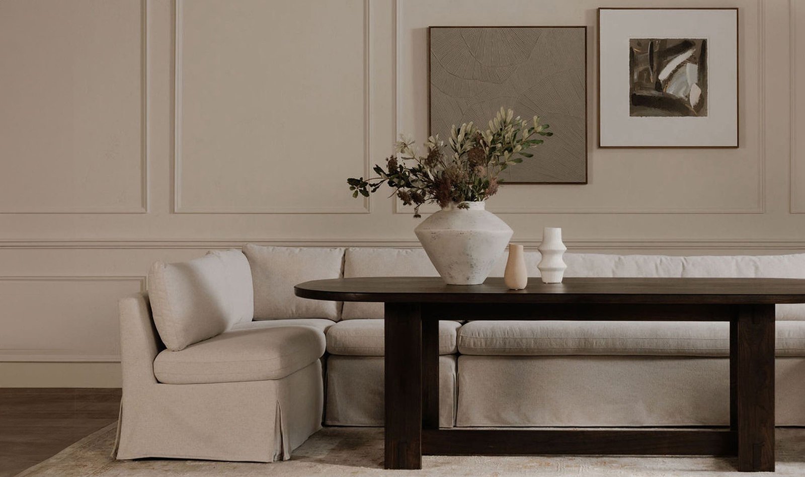 FABLE SLIPCOVER DINING BANQUETTE L-SHAPE? 100.5IN BEIGE