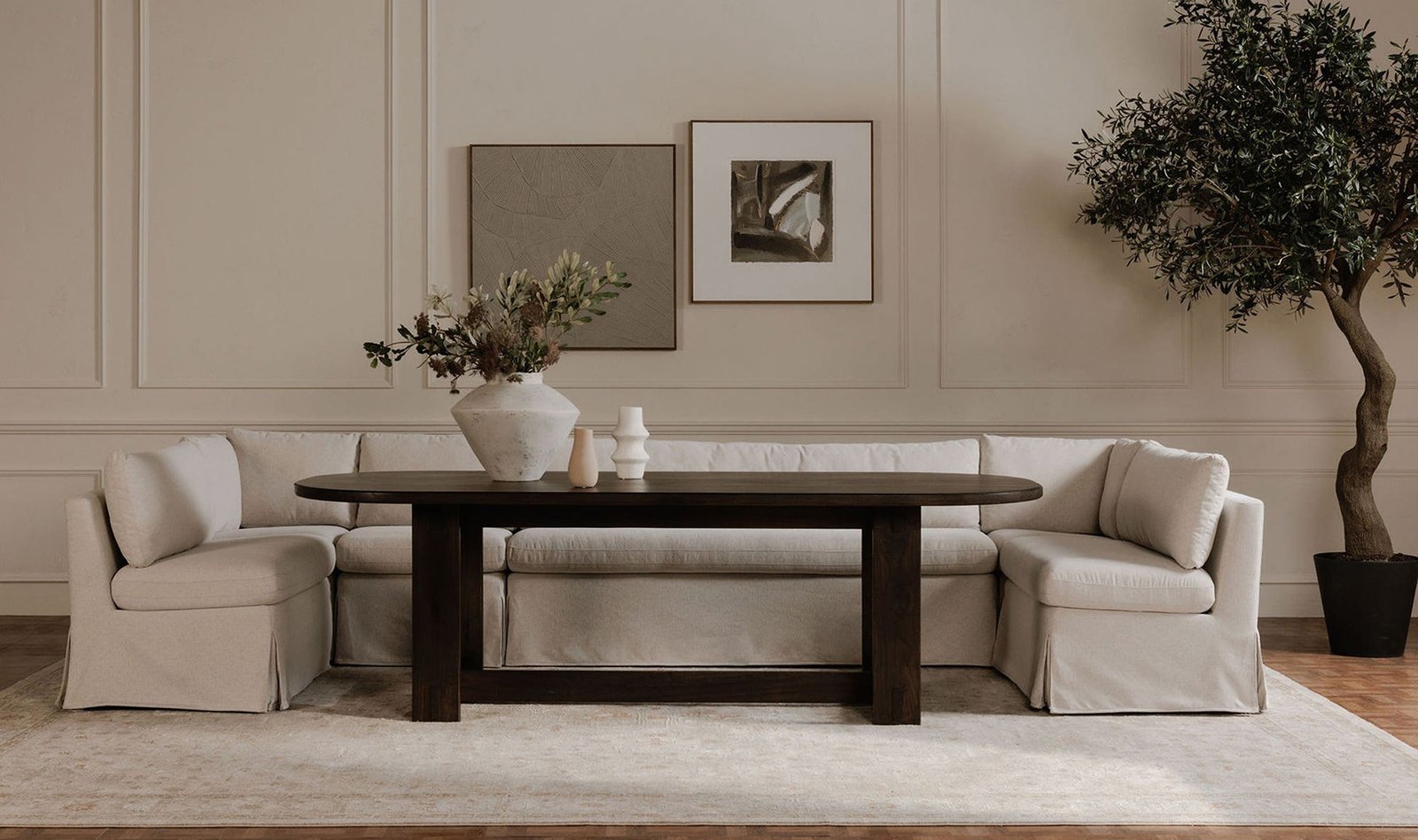 FABLE SLIPCOVER DINING BANQUETTE U-SHAPE 154IN BEIGE