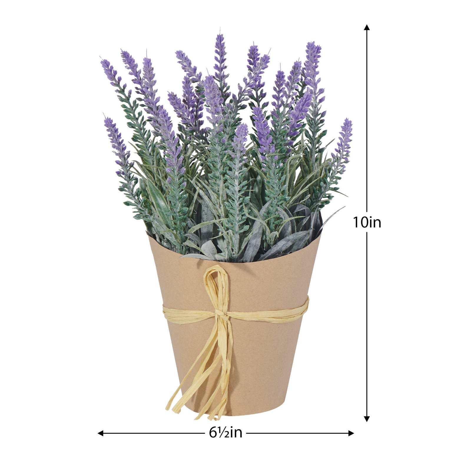 Lavender Faux 10 Inch Potted Plant In Paper Tied Pot