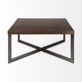 Faye 34L x 34W x 17H Medium Brown Wood W/Antique Nickel Metal Base Square Coffee Table