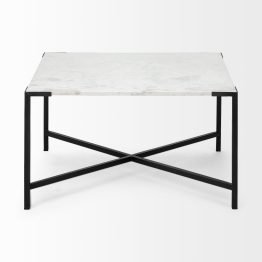 Lucas 30×30 White Marble Top Black Metal Base Coffee Table