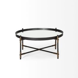 Marshall 32L x 32W Black Round Mirrored Top W/Metal Base Coffee Table