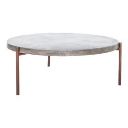 Maxwell 34L x 34W x 16H Light Brown Wood W/ Gold Metal Pedestal Base Round Coffee Table