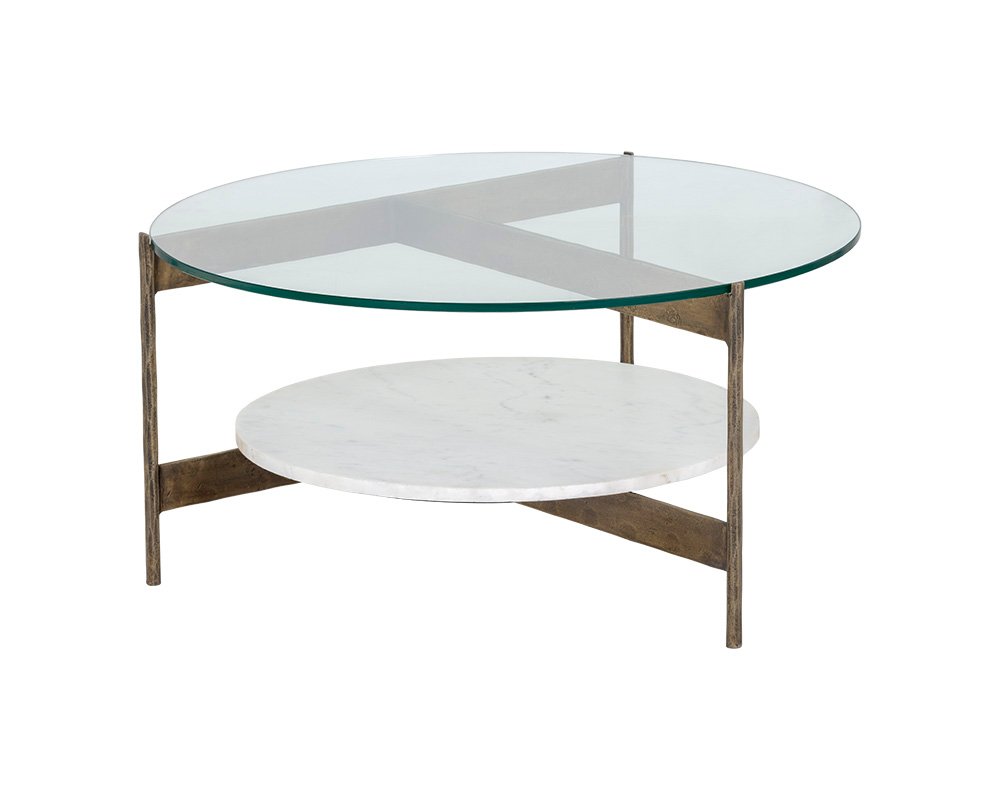 Lorlei I 53.0 X 35.0 X 15.5 White Marble Top W/ X-Shaped Antique Gold Iron Base Coffee Table