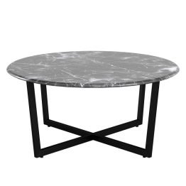 Llona Round Coffee Table in Black Marble Melamine with Matte Black Base