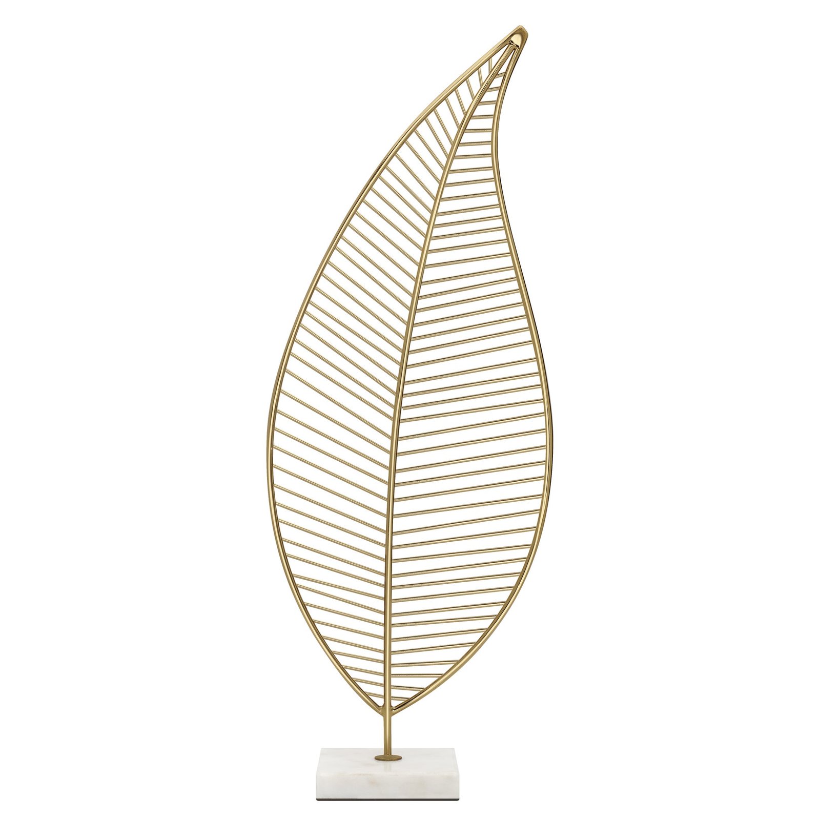 Wire Leaf 16 Inch Tall Decor Sculpture On White Marble Base – Gold