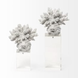 Isla (Small) 5L x 5W White Replica Resin Coral On Clear White Glass