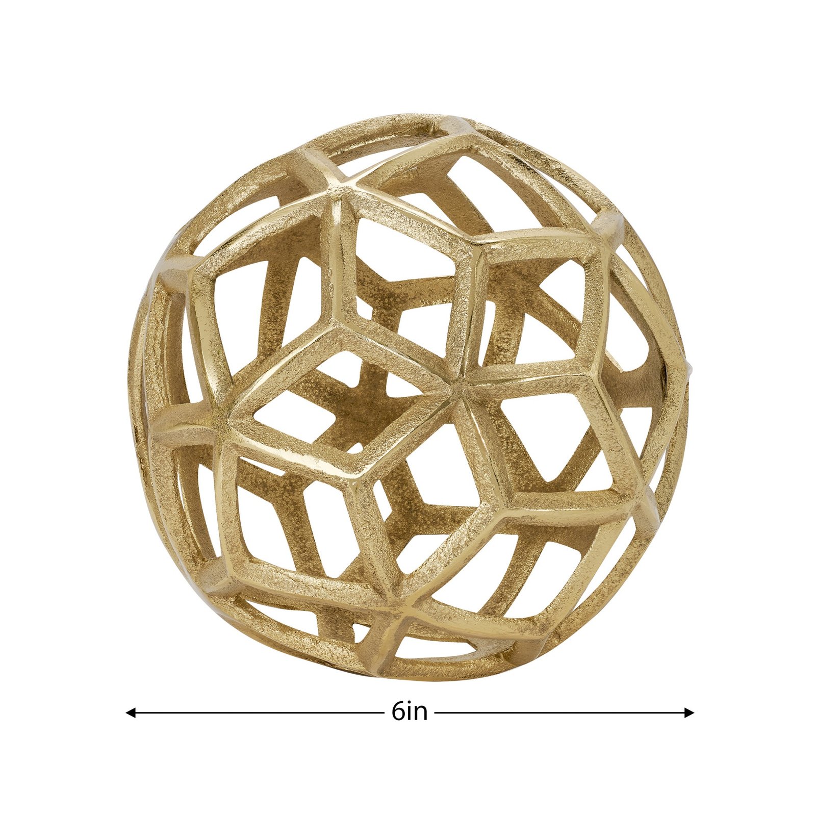 Lattice Orb Gold Nickel Plated Aluminum 6 Inch Diameter Decor Sculpture