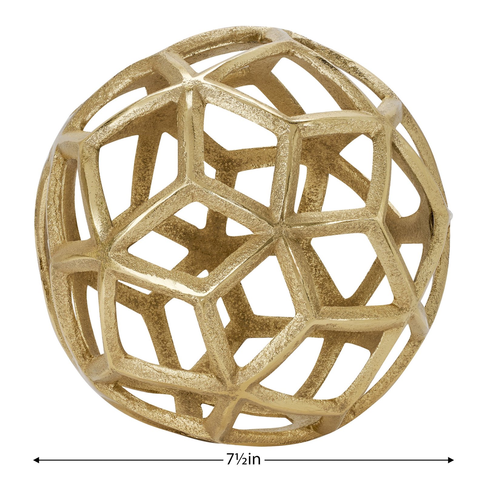 Lattice Orb Gold Nickel Plated Aluminum 7.5 Inch Diameter Decor Sculpture