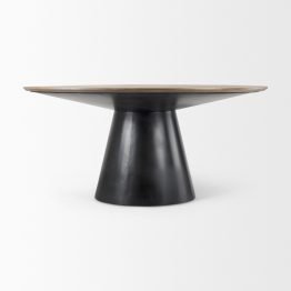 Mitchell Black Metal Pedestal Base with Brown Wood Top Dining Table 63.0L x 63.0W x 30.0H