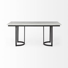 Tanner I 71L x 35W Rectangular White Marble W/ Metal Base Dining Table