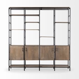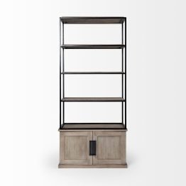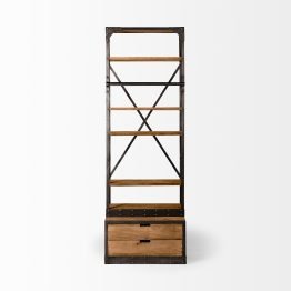 Brodie I Medium Brown Wood Copper Accent Four Shelf Shelving Unit 32L x 22W x 94H