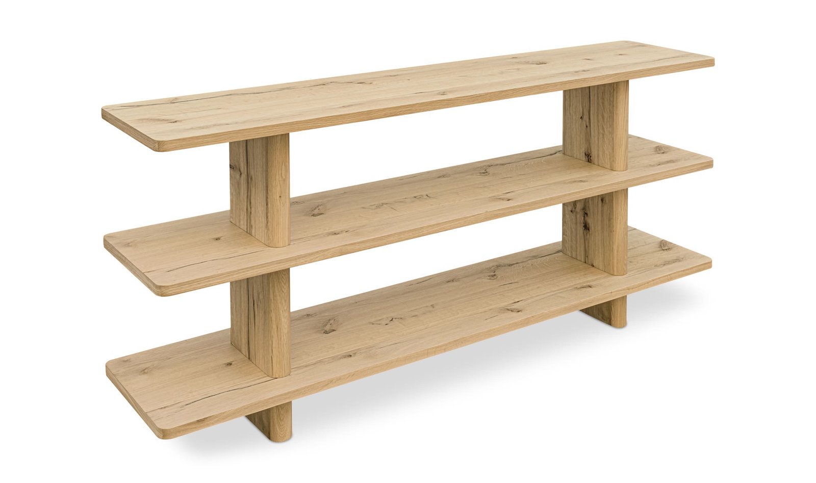 Braxton I Light Brown Wood and Iron Three Shelf Shelving Unit 81.5L x 18.5W x 90