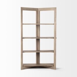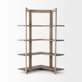 Turnbull I 57L x 35W x 72H Light Brown Wood Four Shelf Corner Shelving Unit