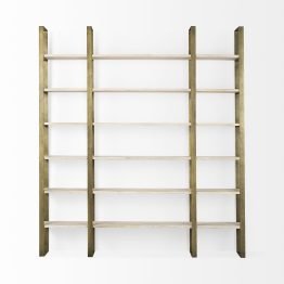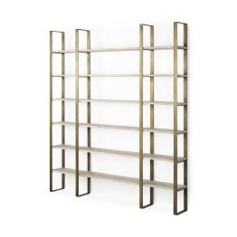 Taunton 80L x 10.5W x 90H Light Brown Wood W/ Gold Metal Frame 6 Tier Shelving Unit