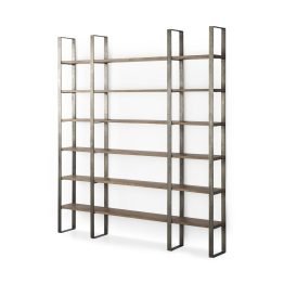 Taunton 80L x 10.5W x 90H Medium Brown Wood W/ Antique Nickel Metal Frame 6 Tier Shelving Unit