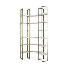 Turner 37L x 37W x 90H Light Brown Wood W/ Gold Metal Frame 6 Tier Curved Shelving Unit