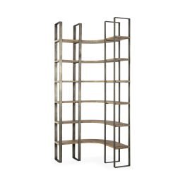 Turner II 37L x 10.5W x 90H Curved Dark Brown Wood And Black Iron Six Shelving Unit