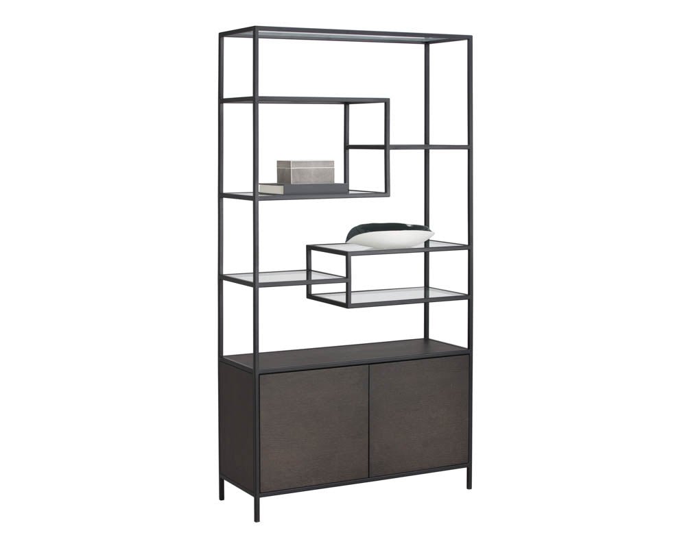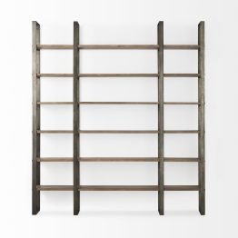 Taunton I 80L x 10.5W x 90H Brown Wood and Black Iron Six Shelving Unit