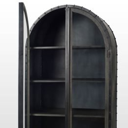Gehry 72.3″ H Dark Brown Metal Brown Wood and Glass Door Display Cabinet