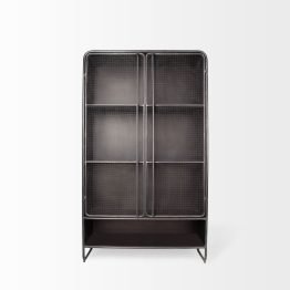 Klaus 74.5″ H Dark Brown Polished Metal Mesh Door Display Cabinet