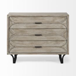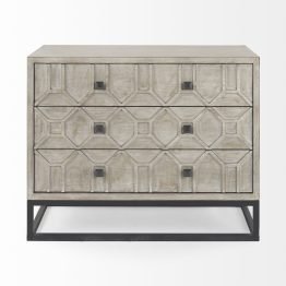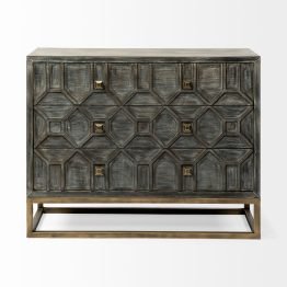 Genevieve I 39L x 16W Gray Fir Veneer And Metal Base 3 Drawer Accent Cabinet