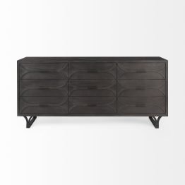 Glenn VI 71.5×18 Dark Brown Wood Frame w/ Black Iron Accent 6 Drawer 2 Door Cabinet Sideboard