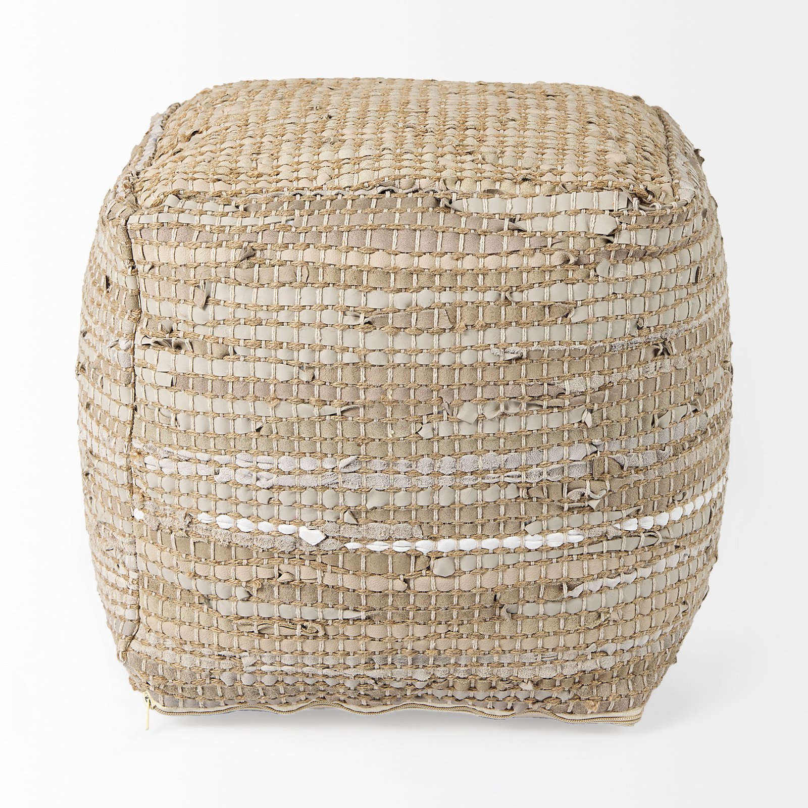 Aalia 16.0L x 16.0W x 16.0H Beige Leather and Jute Pouf