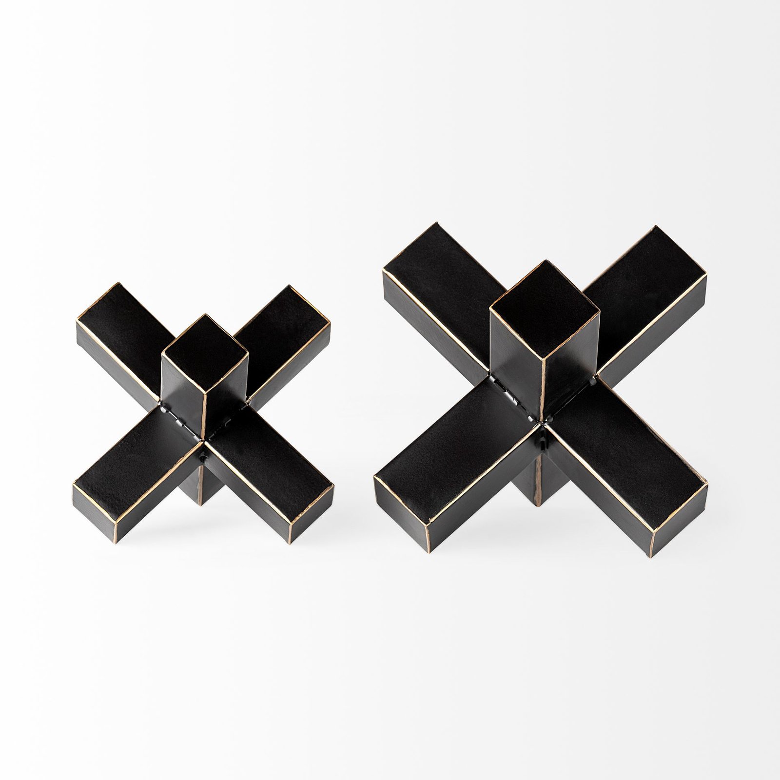 Featuring a geometrically inspired design the Abel?is a spectacular decorative object crafted from iron and finished in a matte-black tone with gold accents. We recommend this stylish decorative piece for spaces based on the Mercana Modern design style.. Dimensions: 9.4L x 8.5W x 8.1H