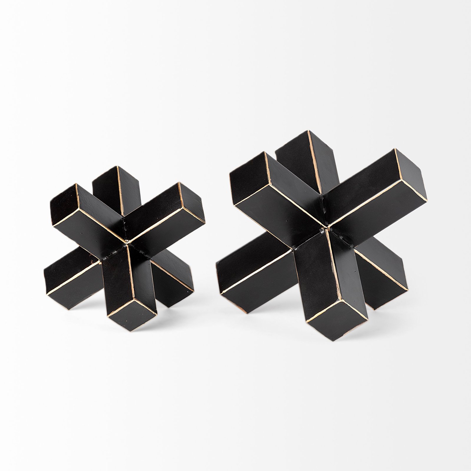 Featuring a geometrically inspired design the Abel?is a spectacular decorative object crafted from iron and finished in a?matte-black tone with gold accents. We recommend this stylish decorative piece for spaces based on the Mercana Modern design style.. Dimensions: 7.7L x 6.7W x 6.3H