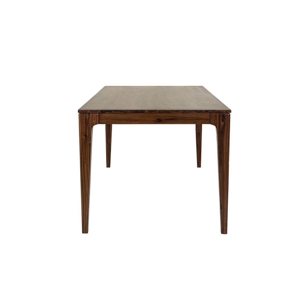 Solid Acacia Wood: Our dining table is meticulously crafted from high-quality. durable acacia wood. ensuring longevity and resilience. The natural beauty of acacia wood adds warmth and character to your dining area. . Sturdy Construction: The solid build of the table ensures stability and durability. providing a reliable foundation for family gatherings. dinner parties. or everyday meal. . Midcentury Modern Design: The Allure Dining Table embodies the sleek lines and minimalist elegance characteristic of midcentury modern furniture. Its design pays homage to a bygone era while remaining relevant and stylish in contemporary settings. . Dimensions: 72 x 35 x 30 ; 61lbs