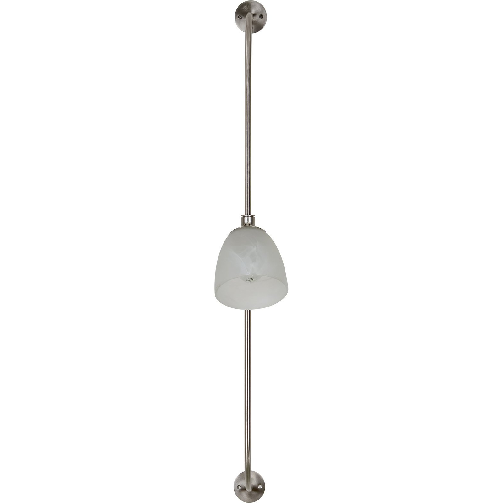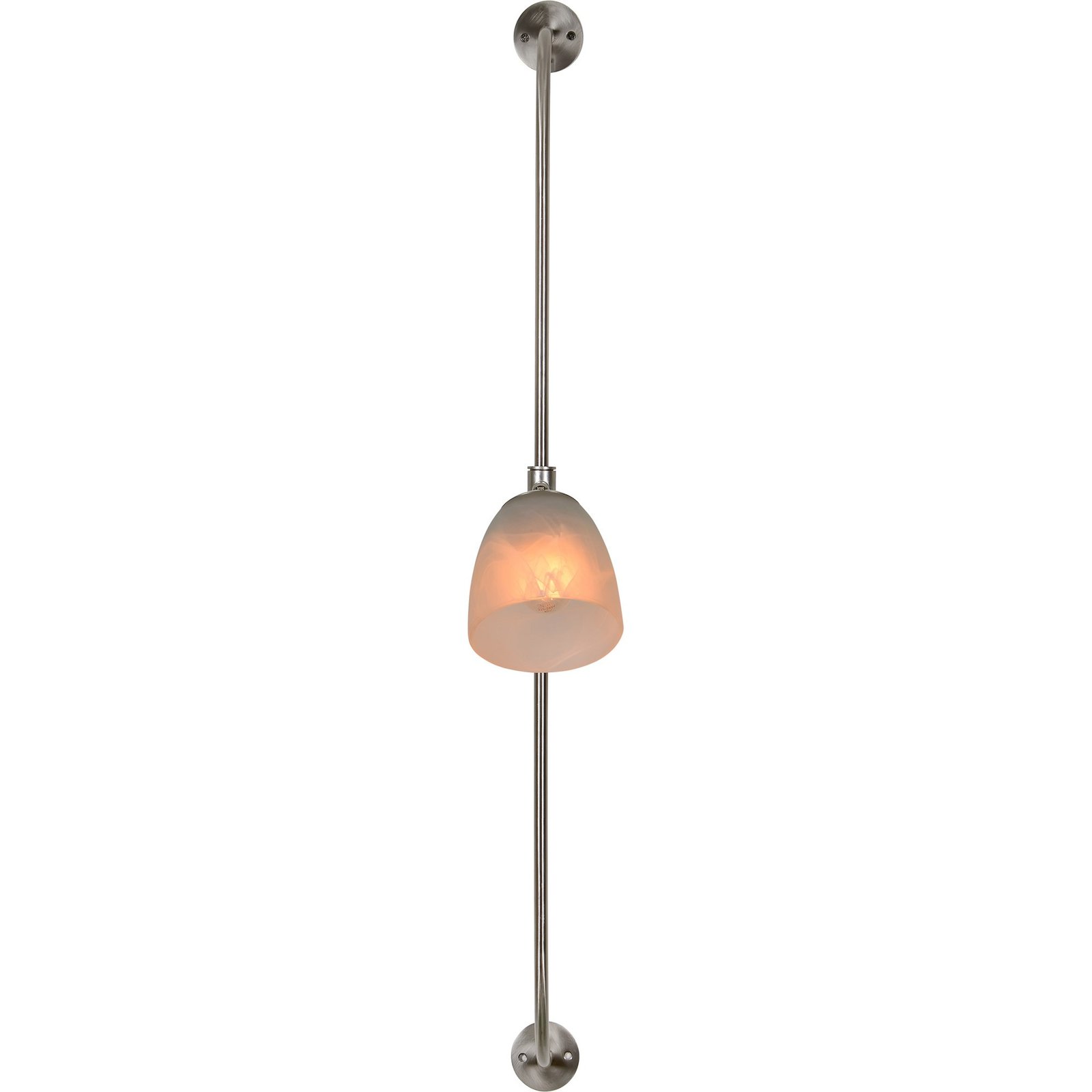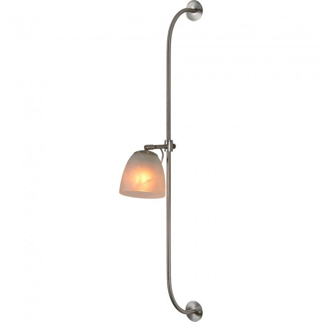 Wall SconceIronSatin Nickel Plated FinishAlabaster Glass ShadeIn-Line SwitchMax. 40WE26 SocketAdjustableNet Weight: 3lbs.Gross Weight: 6lbs.. Dimensions: