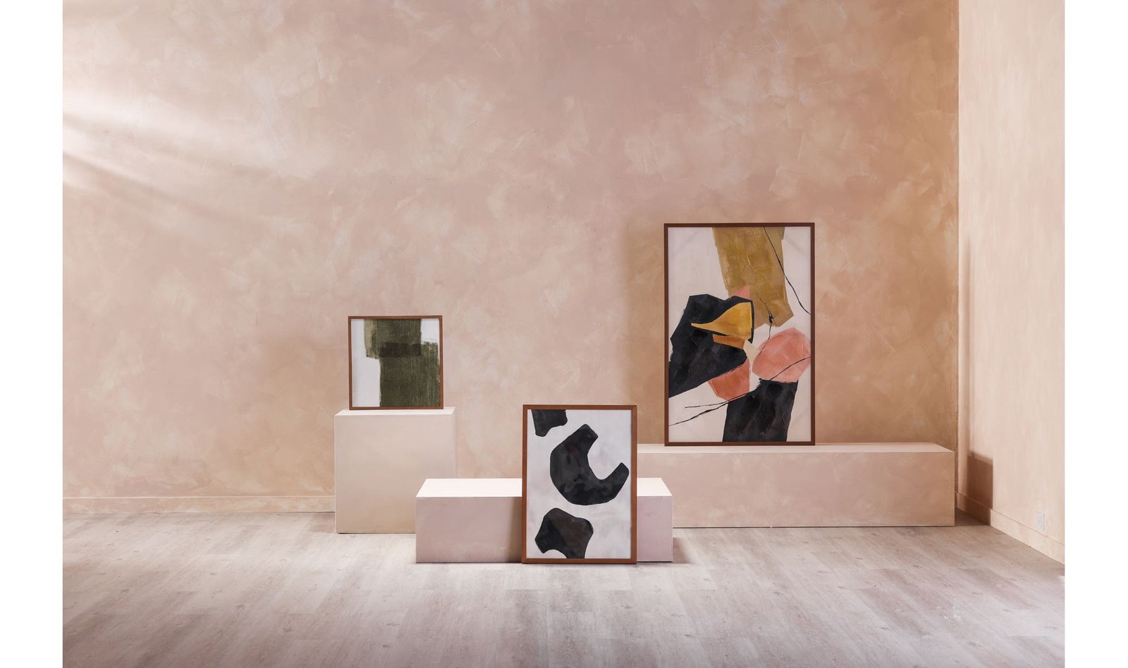 Inspired by the 60s Anni’s rich amber dusty pink and soft olive tones underscore the playful abstract shapes that are grounded by the cream and black backdrop. The warm brown finish of the solid pine frame highlights the presentation with a vintage feel.. Dimensions: 31.5? W X 1.75? D X 48.0? H