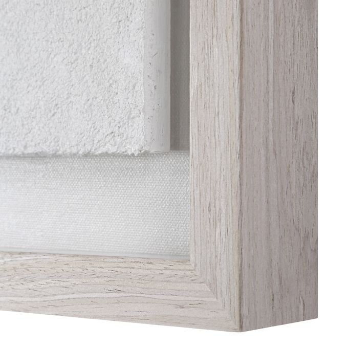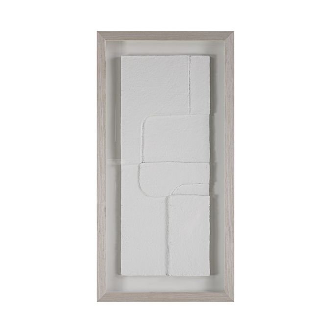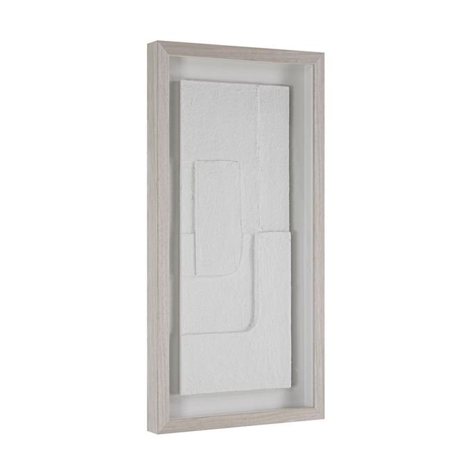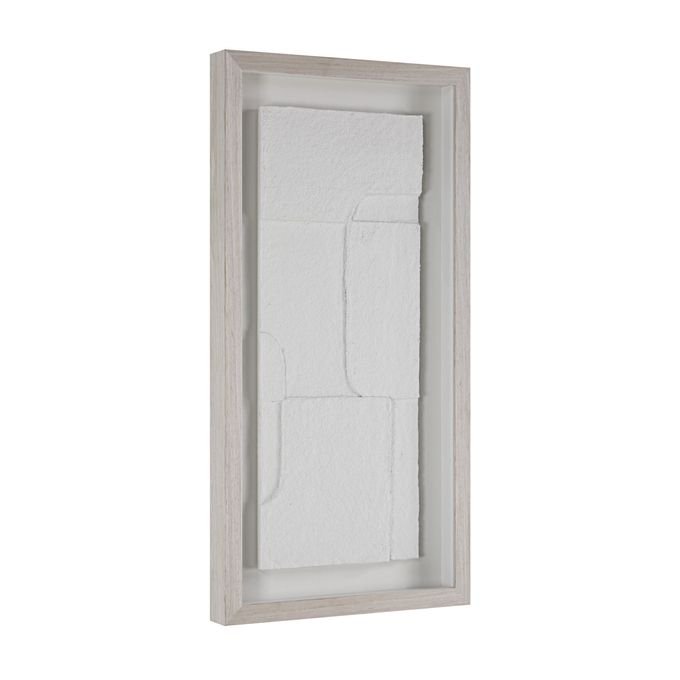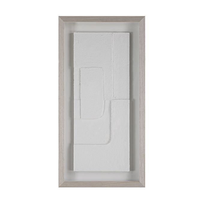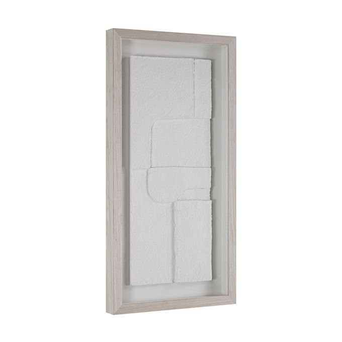 Triple up on neutral-hued texture with this trio of modern wall art. Designed using a papier mache technique each multidimensional piece is mounted with a floating effect under glass and surrounded by a light walnut frame for a contemporary look and feel in any interior. Display them horizontally or vertically for showstopping style.