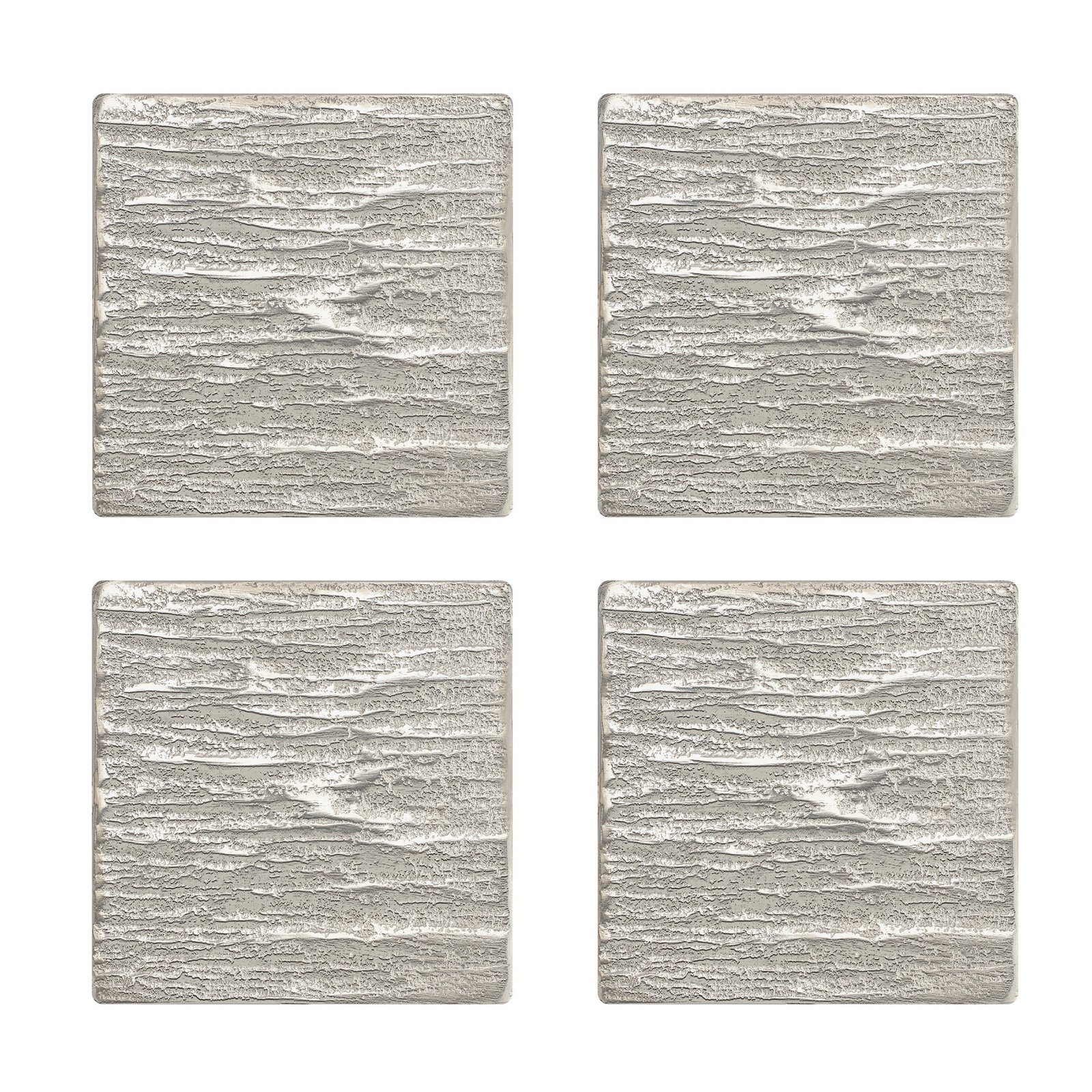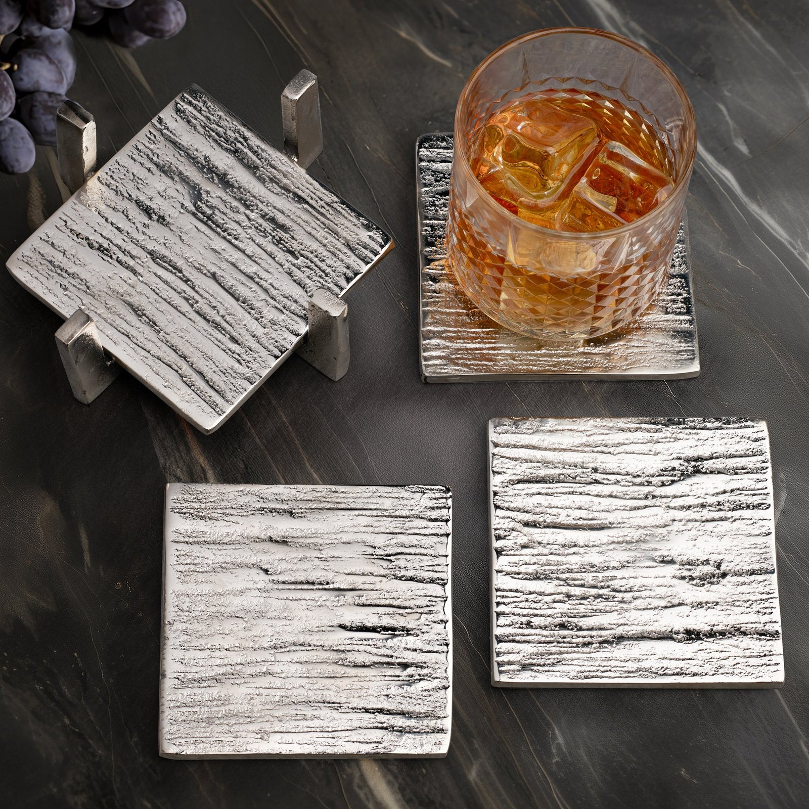 Arta 4 Piece Nickel Plated Grooved Aluminum 4X4 Inch Square Coaster Set with Stand