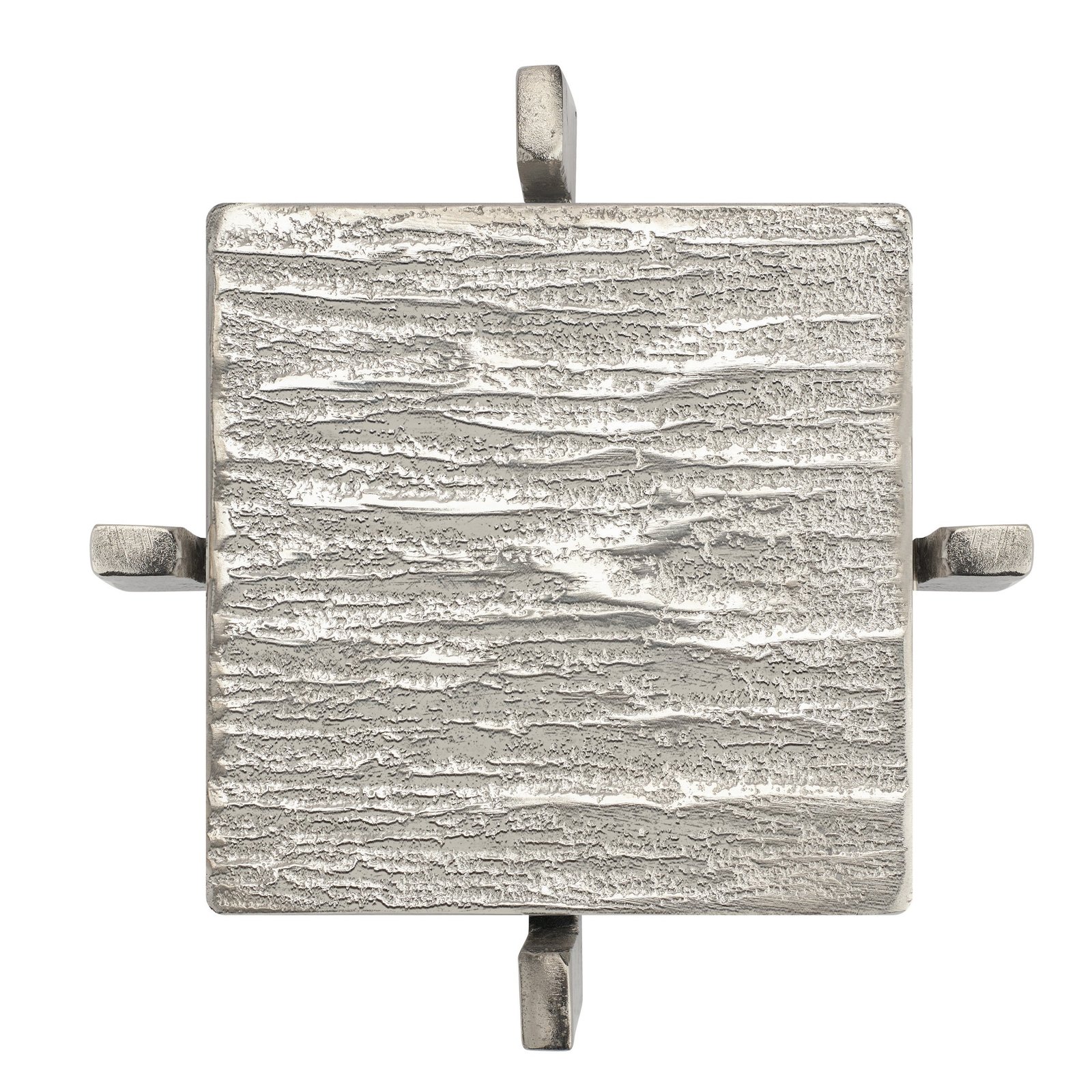 This set of four nickel-plated aluminum square coasters brings a refined metallic accent to your tabletop. Each coaster rests neatly in a coordinating holder making storage both practical and visually sleek. A subtle way to elevate your hosting essentials or add a polished layer to everyday settings. Dimensions: Each: 4 inch length x 4 inch width x 0.25 inch height. Stand: 5 x 5 x 2 inch height