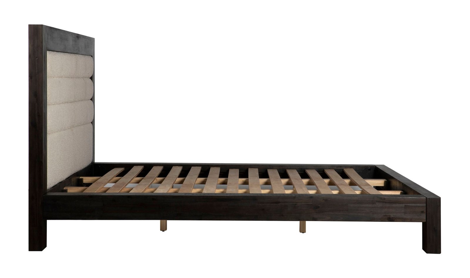 Created to provide ultimate comfort the Ashcroft is the perfect place to unwind. Its padded headboard makes it perfect to lean on for the night reader while the dark finish of the acacia veneer frame makes it contemporary yet relaxing to the sight.. Dimensions: 87.0? W X 87.0? D X 48.0? H