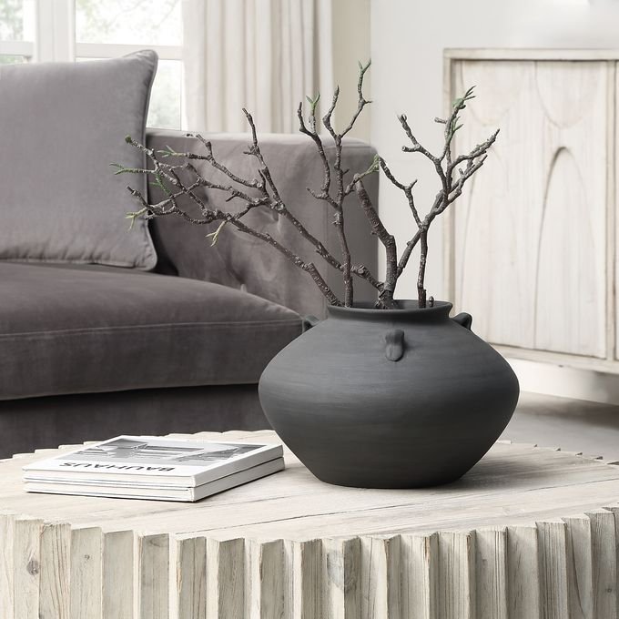 Incorporating a one-of-a-kind look and feel to any interior is a smart way to avoid cookie-cutter decorating. This vase features an antique black-painted finish and that special potter?s touch that ensures a high-end vibe worthy of your design project. And because it?s watertight it can hold real branches or blooms to bring a dash of nature to any space.