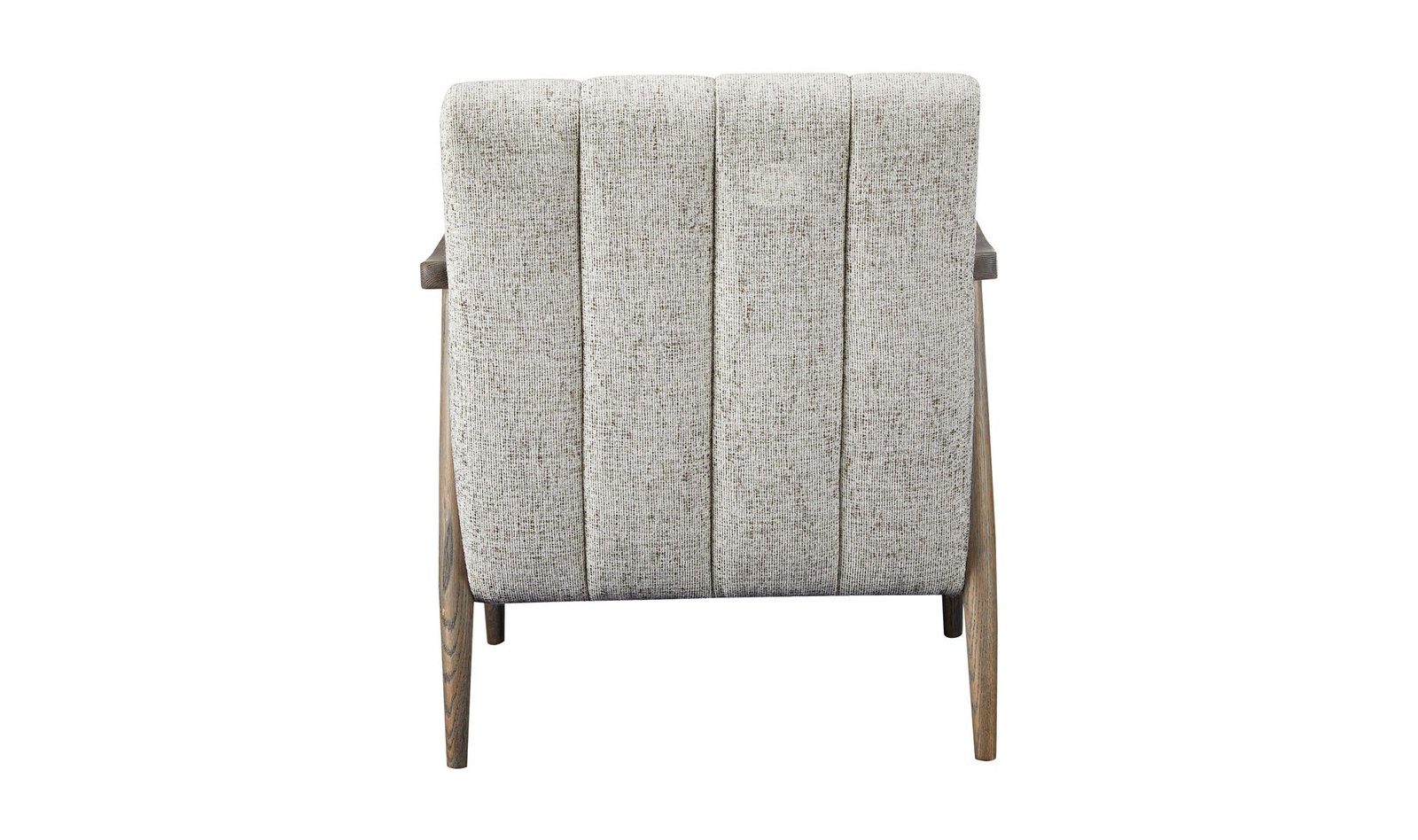 The Aster accent chair brings Mid-century inspiration and a rustic charm with a solid oak frame in an aged brown finish. Its channel detailing and textured upholstery in neutral tones add depth and visual appeal while its timeless silhouette and meticulous craftsmanship add warmth to any space.. Dimensions: 26.0? W X 32.5? D X 32.0? H