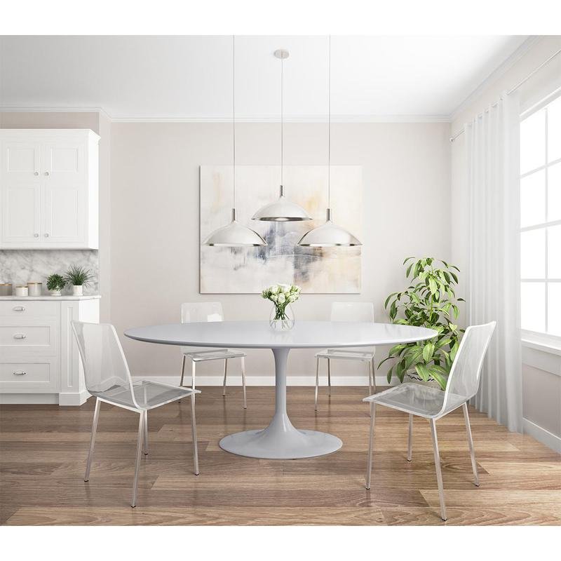 Grace and function fuse together to form the elegant Astrid Dining Table. With a clean satin white finish durable tulip base and crisp oval top this table will be sure to wow your friends and family. From lavish dinner parties to casual get togethers the Astrid Dining Table will add a dash of vitality and elegance to any space or occasion.. Dimensions: 78.8″L x 47.3″W x 29.1″H
