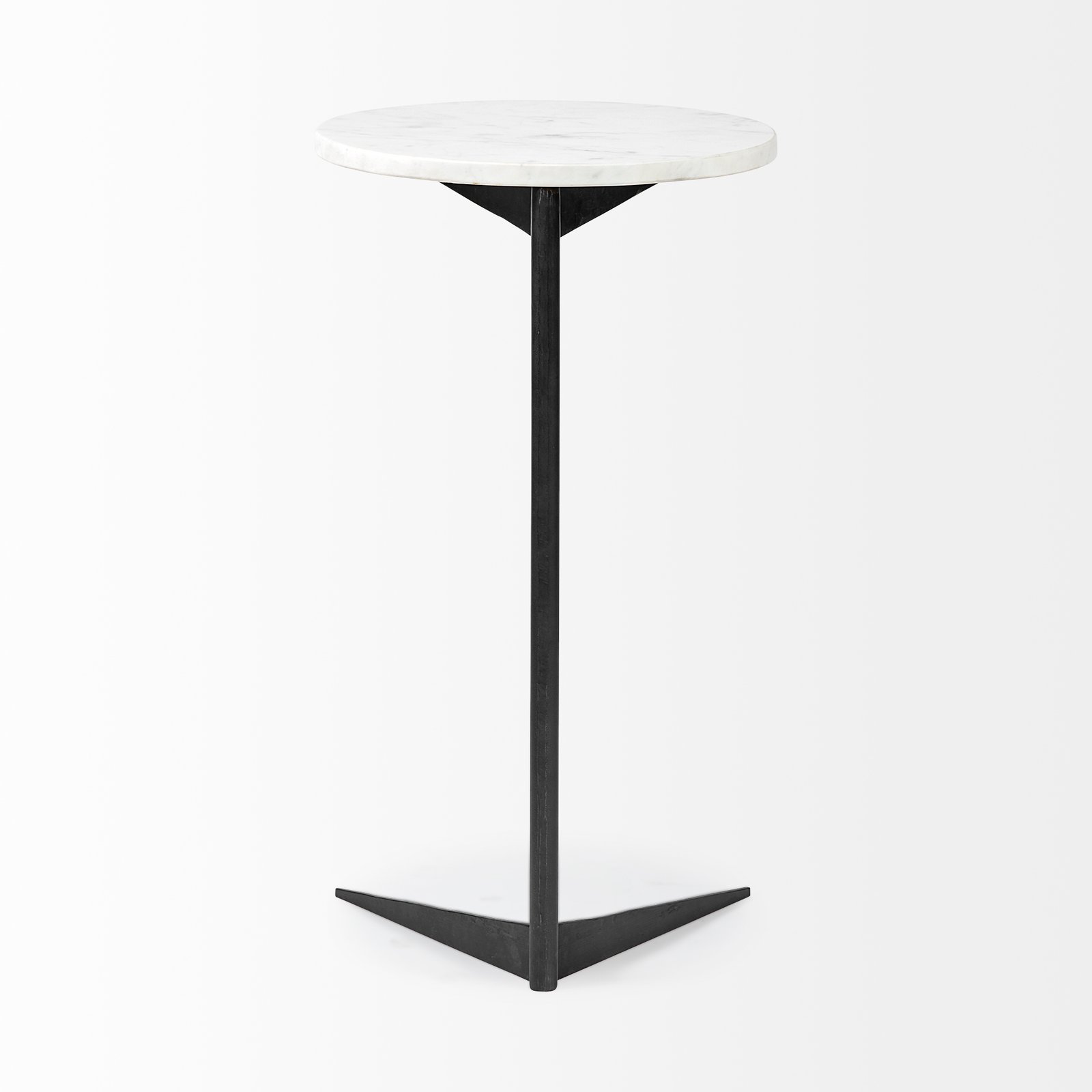 Ballatine 15L x 15W x 27L White Marble Round Top White w/ Black Metal Base Accent Table