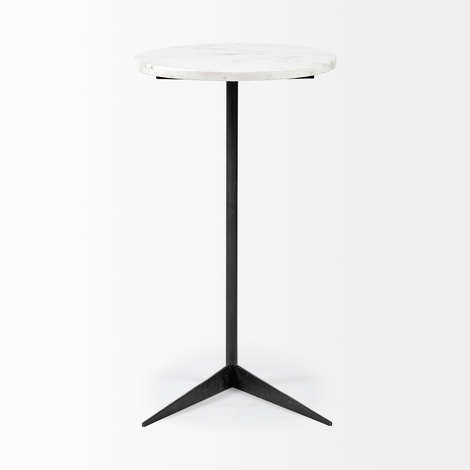 Featuring a beautiful white marble top the Ballantine s a stunning accent table that is guaranteed to elevate your decor game. The elegant white marble top is braced by a sleek matte-black metal frame that not only stabilizes the top to perfection but also adds to the visuals of this piece. The juxtaposition of white marble and blackmetal makes the Ballantine a great choice for spaces based on the Enduring Elegance Mercana Modern and Industrial design styles.. Dimensions: 15.0L x 15.0W x 27.0H