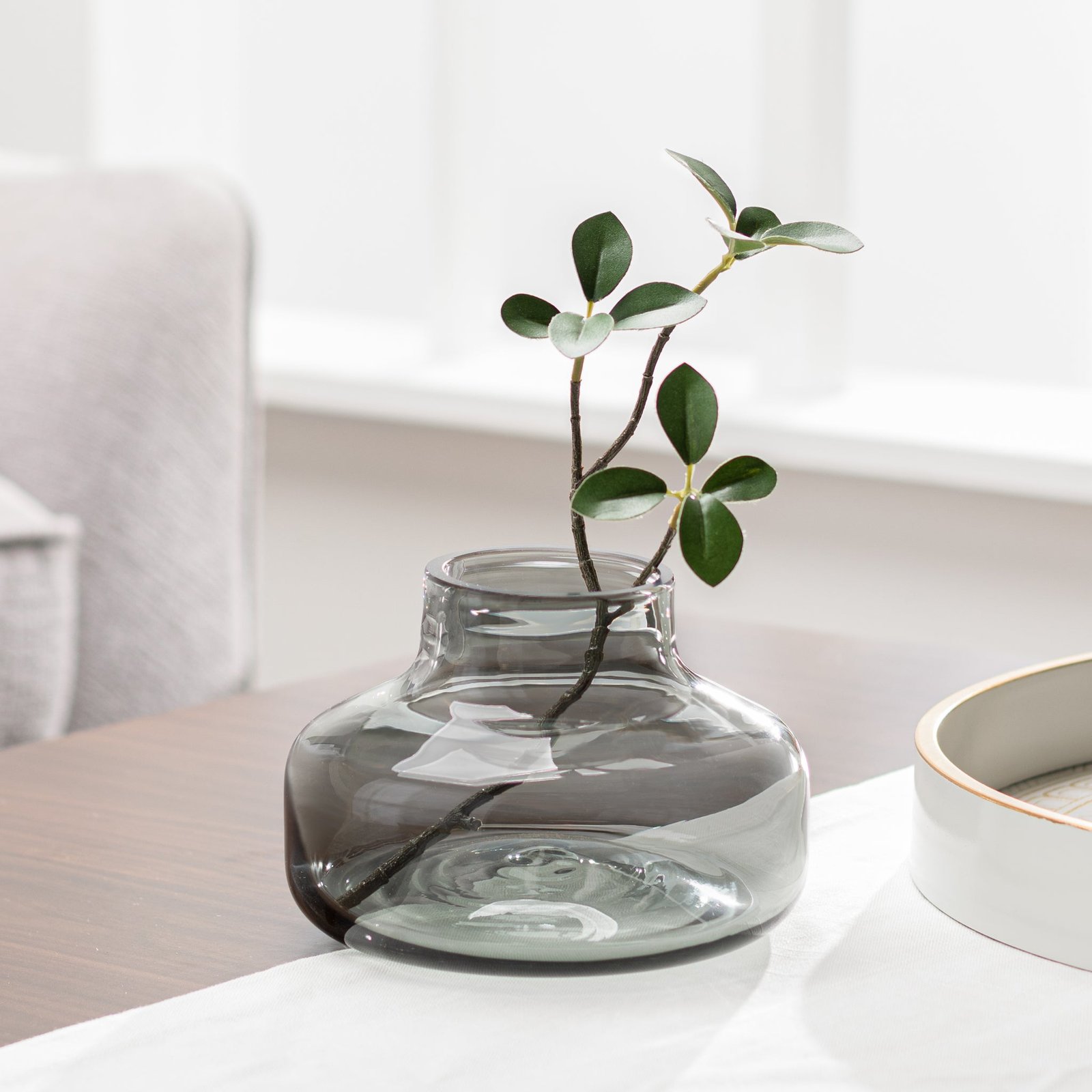 Beau Mini Bottle 4 Inch Tall Wide Glass Vase – Smoke